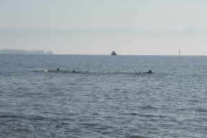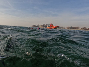 Begleitet wurden die Schwimmer und Schwimmerinnen von zwei Rettungsbooten der DLRG.