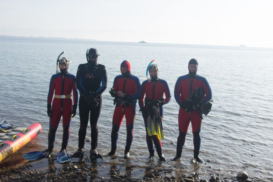 Pünktlich um 13 Uhr stiegen fünf Teilnehmer:innen bestehend aus aktiven Einsatztauchern und Strömungsrettern der DLRG Bezirk Bodenseekreis an der Schlosskirche Friedrichshafen in den Bodensee.